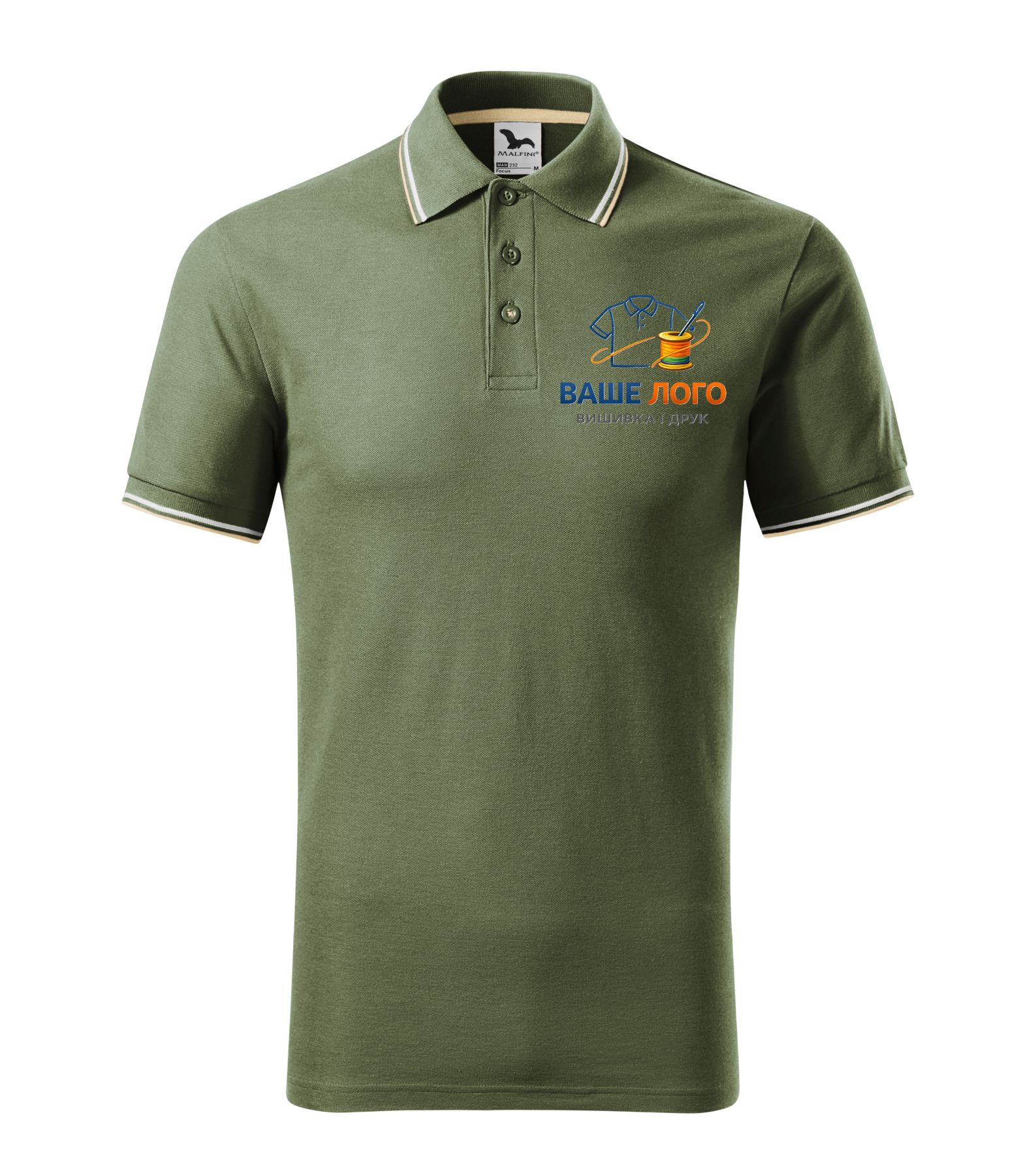 Футболка поло чоловіча кольору хакі нанесення логотипу